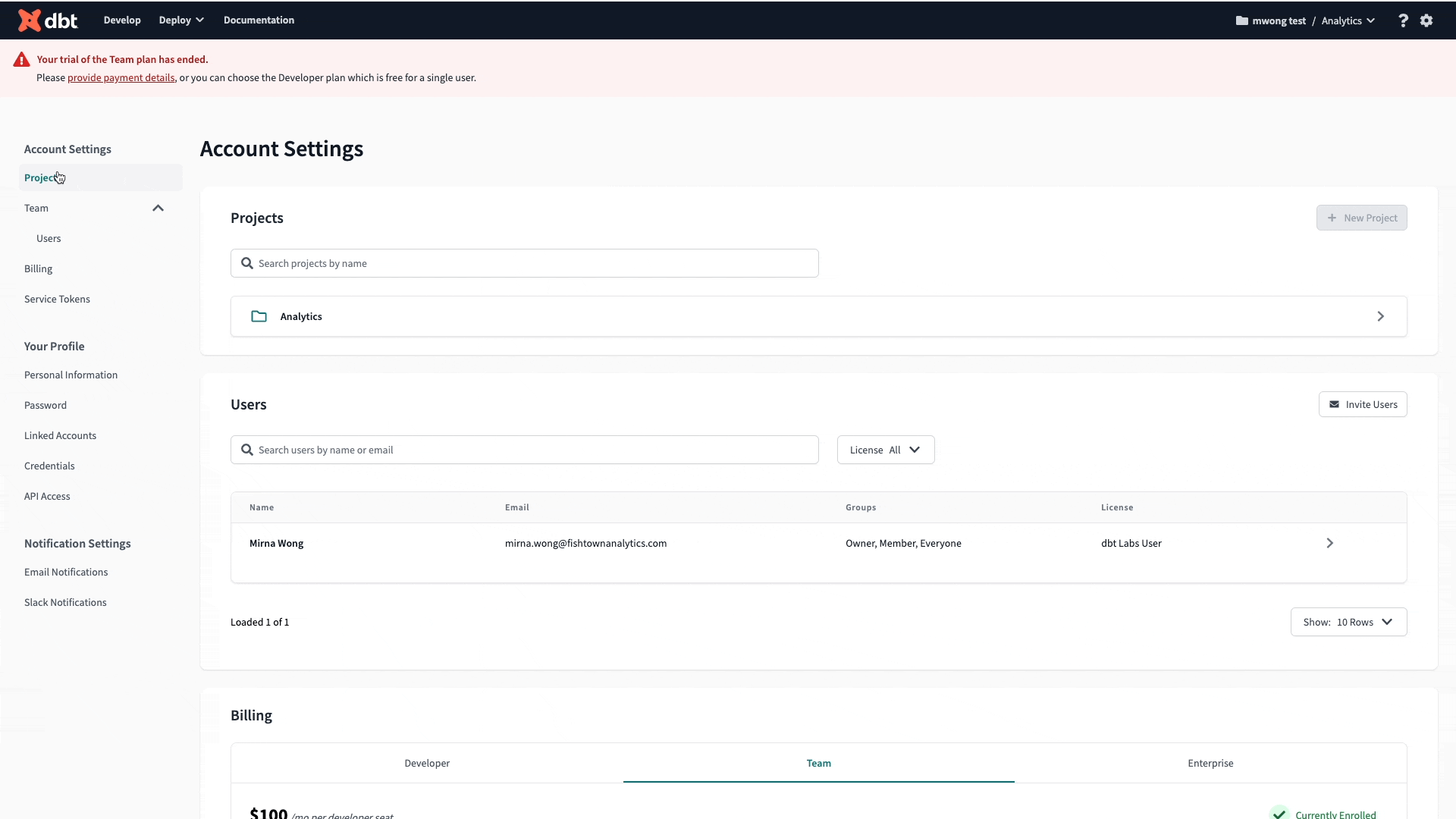 5. This automatically unlocks your dbt Cloud account, and you can now enjoy the benefits of the Team plan. 🎉